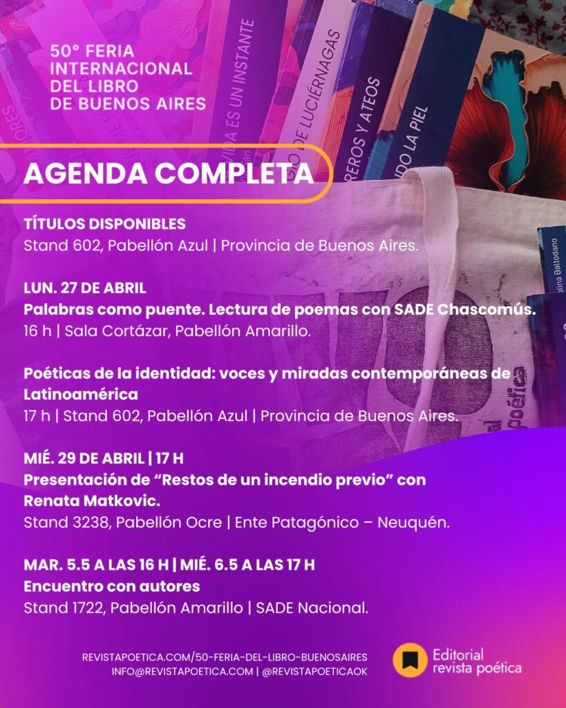 La Editorial Revista Poética presenta esta actividad, realizada gracias al acompañamiento de la Coordinación Editorial del Instituto de Cultura de la Provincia de Buenos Aires.